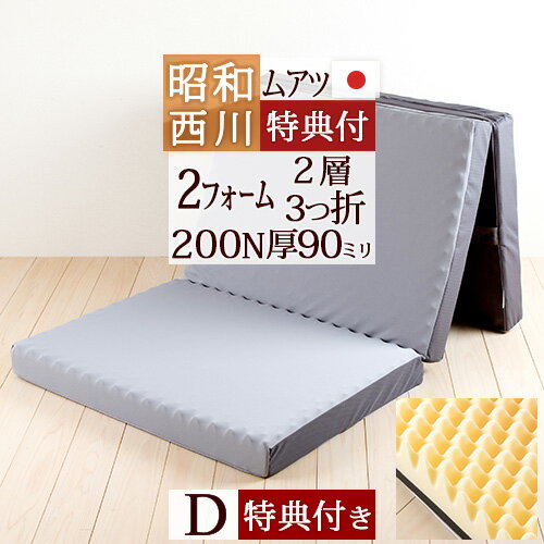 【14000円引クーポン】【ポイント10倍】□専用シーツ等3点プレゼント ムアツ布団 ダブル 2フォーム 三つ折 厚さ90ミリ 200N ムアツ敷き布団 無圧布団 敷布団 敷きふとん 送料無料