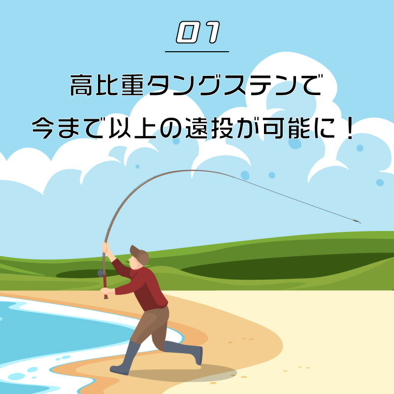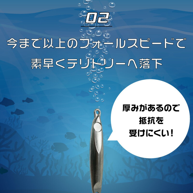 キャスティング時にはより飛距離が伸びたり、着水後にはジグを早めに着底させることができます。