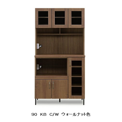 90 キッチンボード C/Wウォールナット色MDF・強化紙送料無料(玄関前まで)北海道・沖縄・離島は除く