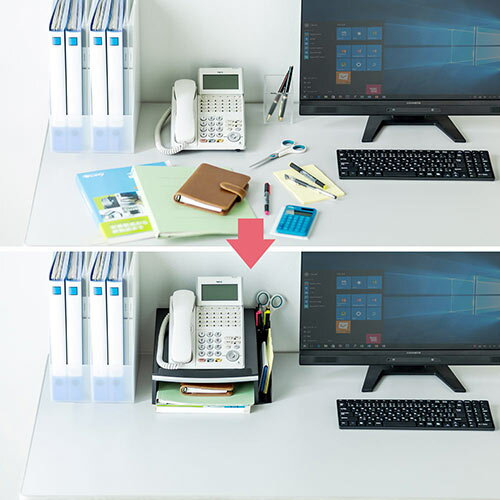 台下にはA4書類も収納可能で、限られたスペースを有効活用できます。