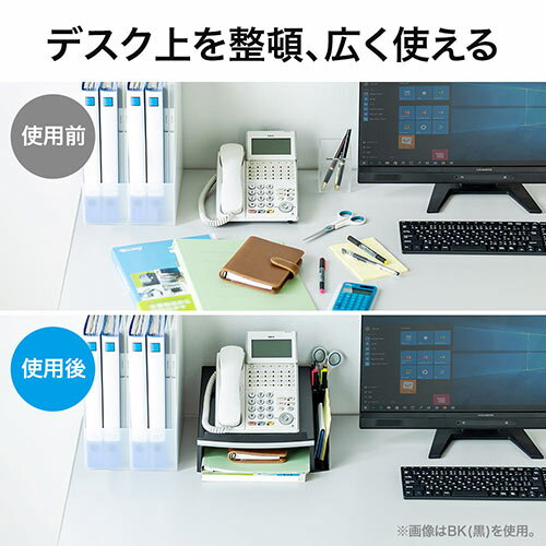 台下にはA4書類も収納できるので、限られたスペースを有効活用できます。