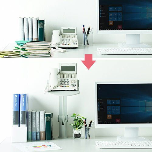 <特長>●電話機を約40cm上に設置して、空いたスペースを有効活用できます。