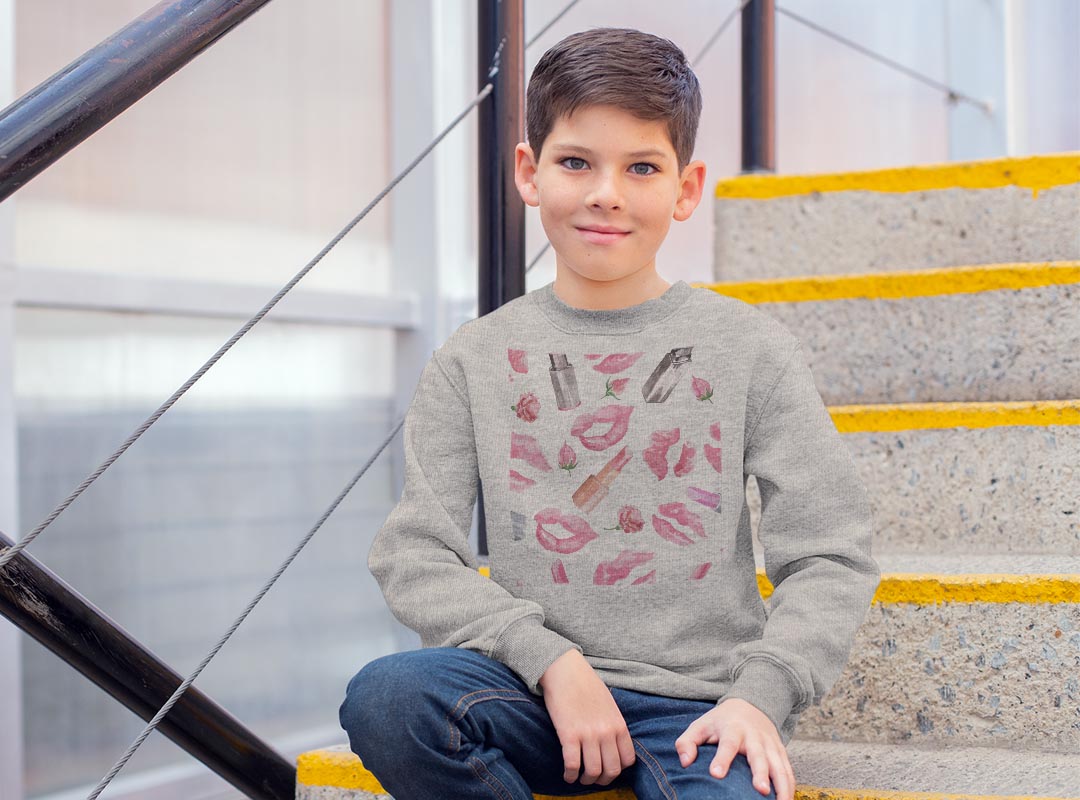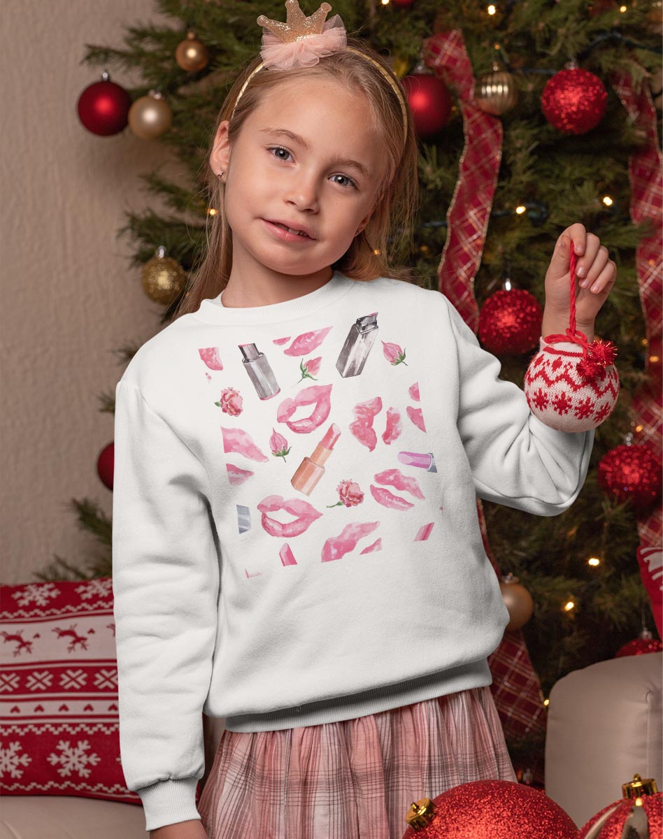 トレーナー キッズ 子供 長袖 ホワイト グレー ブラック デザイン 110 130 150 sweatshirt trainer 白 黒 灰色 裏パイル スウェット スエット 011363 メイク くちびる 花