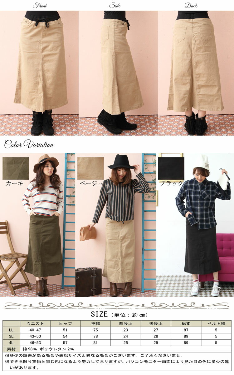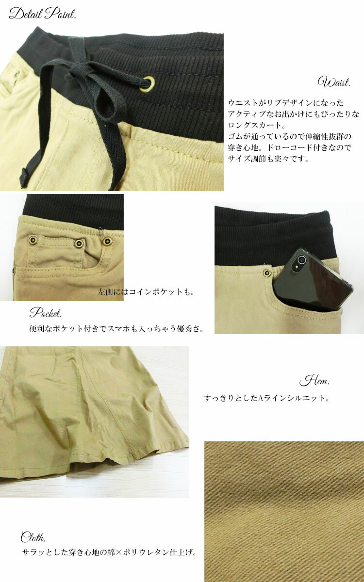 当店取扱いサイズ Sサイズ Mサイズ Lサイズ LLサイズ 2Lサイズ 3Lサイズ 4Lサイズ 5Lサイズ 6Lサイズ フリーサイズ 7号 9号 11号 13号 15号 17号 19号 XL XXL XXXL XXXXL 2XL 3XL 4XL 当店取扱いカラー 黒 白 赤 青 緑 紺 桃 橙 灰色 黄色 杏色 珈琲 茶 ブラック ホワイト レッド ブルー グリーン ネイビー ピンク オレンジ グレー イエロー ベージュ クリーム カーキ コーヒー ブラウン BLACK WHITE RED BLUE GREEN NAVY PINK ORANGE YELLOW BEIGE CREAM KHAKI COFFEE BROWNこなれたカジュアルをめざすなら絶対に外せない、カーゴロングスカート。
